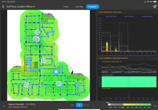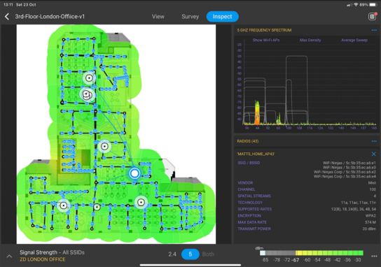 In-depth survey information at your fingertips Introducing a new Inspect view, where you can see and analyze each and every scan point as a playback on your survey path. This allows you to better understand how your Wi-Fi is performing in different locations.